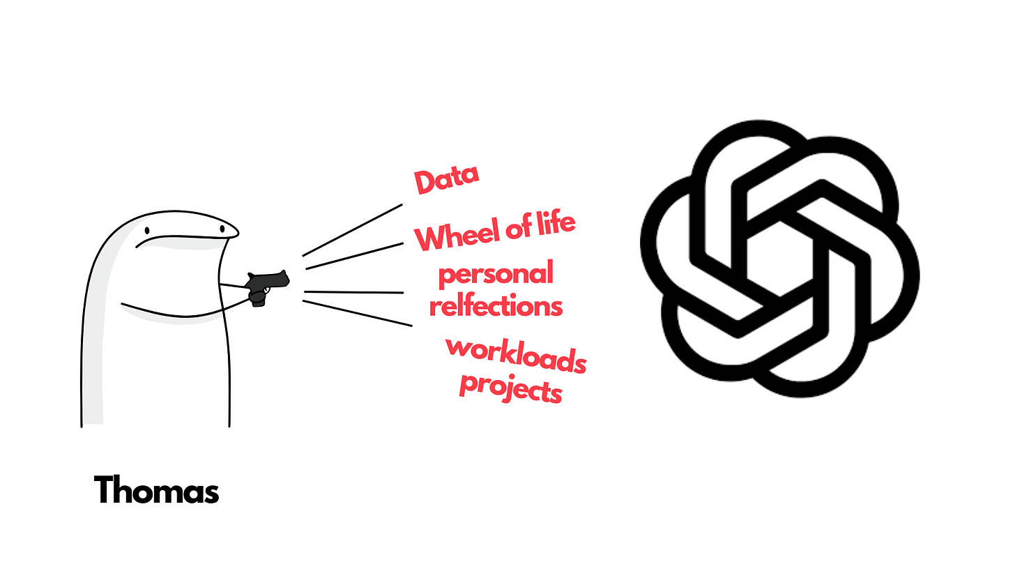 I uploaded my data from 2017 until today — including routines, workloads, reflections, and several “wheel of life” assessments from different stages of my life.